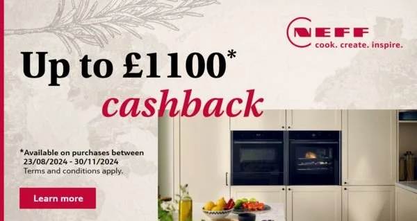 Up to £1100 Cashback when you purchase up to 7 built in Neff Appliances